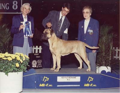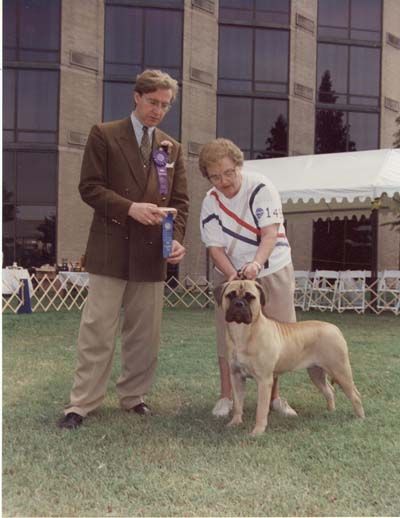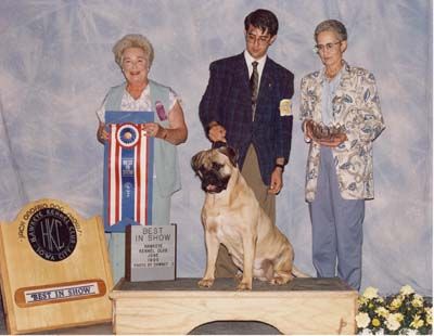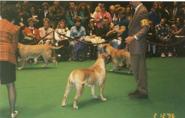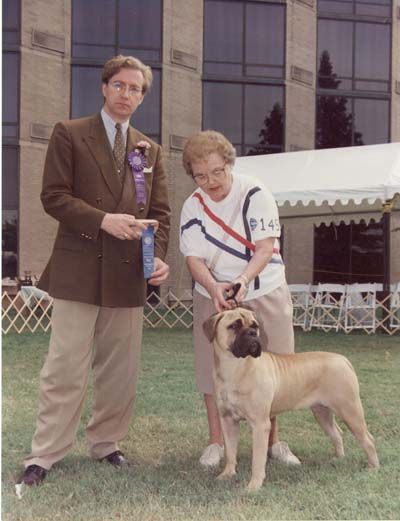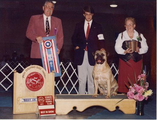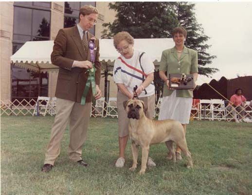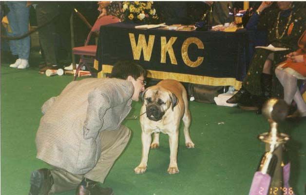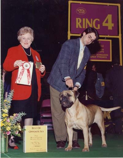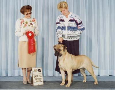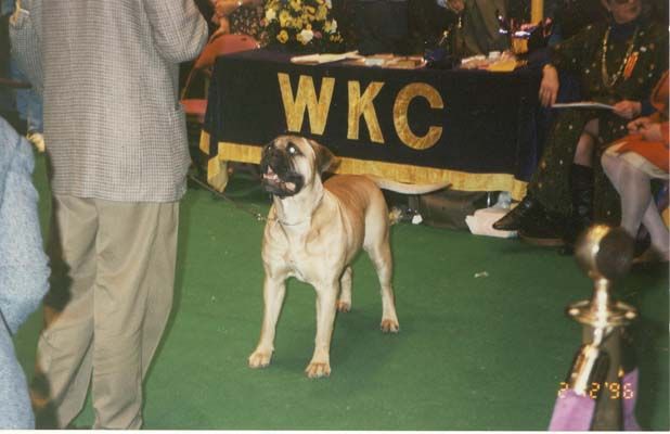 Fetching Frieda was the top-winning bullmastiff show dog in her day. She was the number one bullmastiff in Canada in 1993 and number 1 in the USA in 1994. With her grace, style and movement, Frieda won multiple Best in Show awards and was a winner at the Westminster Kennel Club Show at Madison Garden in New York.